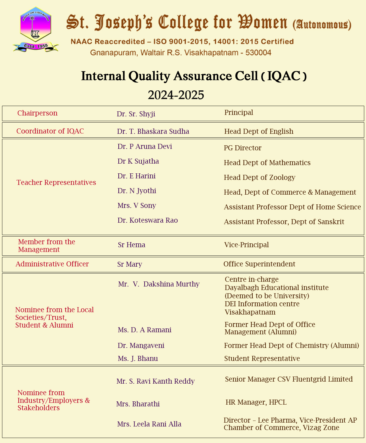 IQAC aligns with the Ethos of the St. Joseph’s congregation and the Vision of the College and seeks excellence in academic, social, and professional areas while deploying innovative measures to strengthen overall institutional development.